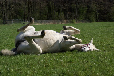 Koliken und andere Krankheiten sind bei der Robusthaltung ein Fremdwort. Der Tierarzt kommt einmal jährlich, um die Zähne zu untersuchen und - wenn gewünscht, zu impfen -, das ist in Sachen Tierarzt auch schon alles. Wurmkuren werden nach Kotuntersuchungen verabreicht, das machen wir selber. Unsere Pflerde sind auch barfuß, d.h. sie tragen keine Hufeisen. Das wiederum bedeutet bessere Hufkonsistenz und keine schlimmen Verletzungen beim "kappeln". Wobei unsere kleine Herde - und auch die größere Herde im benachbarten "Pferdeparadies" - nie ernstlich streitet. Unser Sano hat bislang noch keinerlei Verletzungen davon getragen, ebenso wenig die anderen Pferde. Bei Meinungsverschiedenheiten geht pferd sich halt einfach aus dem Weg, die Weide ist ja groß genug :-) !