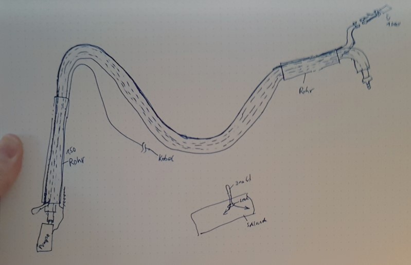 Den Schlauch von außen heizen bringt nicht viel, da der Schlauch aus Kunststoff besteht. Bis da die Wärme durch kommt, kann es dauern. Der Hauptteil der Energie würde auch verloren gehen. Aus dem Grund habe ich eine Lösung vorgezogen, bei der der Heizdraht im Schlauch verlegt ist. Der Heizdraht taut das eventuell gebildete Eis nur bei Bedarf auf, was den Energiebedarf niedrig hält.