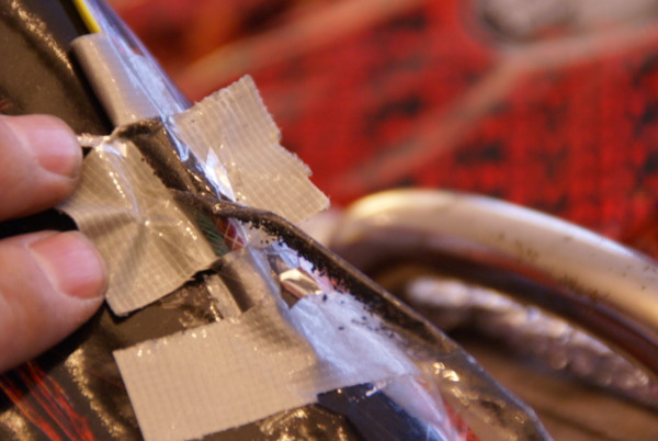 Mit breitem Gewebeband wird nun die Visco seitlich der Mitte festgeklebt (nur andrücken).