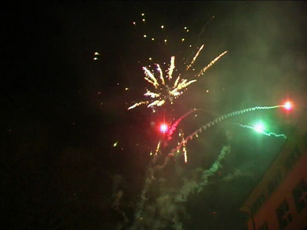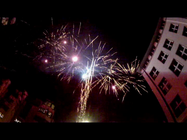 Jetzt gibt es noch zwei Videos vom Feuerwerk, allerdings sind die nicht für das ungeübte Auge. Die erste Aufnahme ist von meiner GoPro Hero2 die ich am Kopf hatte. Die Einstellun mußte ich auf "wide, 1080p, 30fps" stellen damit alles drauf geht. Das hat bei der Hero aber zur Folge, dass sie stark verzeichnet. Das Video kann man nicht ansehen.