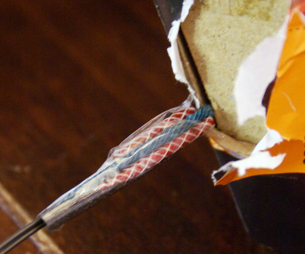 Das ganze sieht jetzt aus wie eine Tüte. Weil sich zum Draht hin der Aufbau verjüngt, kann hier das Matchtape richtig herumgeklebt werden.