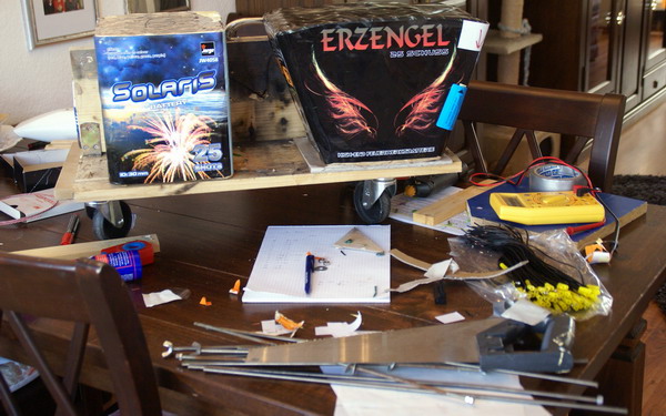 Diesmal wollte ich das Ganze per Funk zünden, was dazu geführt hat, dass ich noch auf die Schnelle eine Funkzündanlage gebaut habe. Der Bericht ist separat hier verfügbar