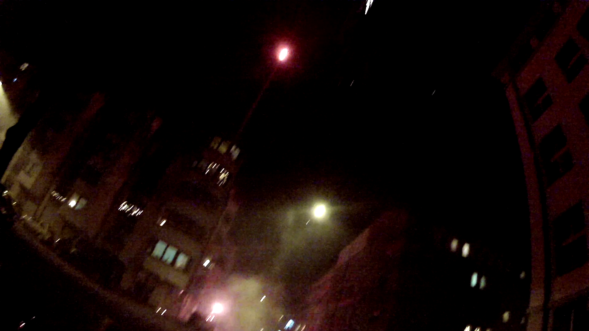 Hier ein Screenshot aus dem Originalvideo. Rechts ist deutlich die Verzeichnung an der Gebäudeecke zu sehen. Das Bild fließt bei Bewegung zentrisch um den Mittelpunkt.