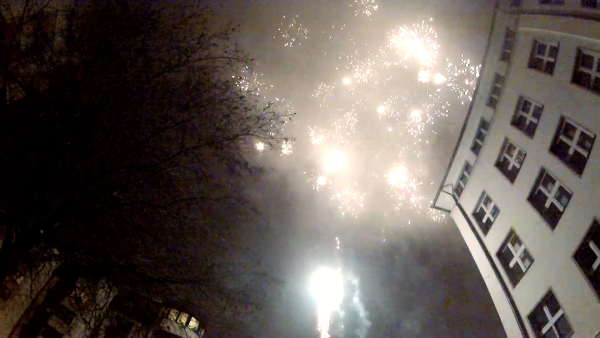 Eine Sichtung der Videos ergab, dass das Silvesterfeuerwerk gut 6 Minuten gedauert hatte - ein sehr guter Wert, da ich ja eine ganz leichte Überlappung der Effekte in Kauf genommen habe, um Pausen zwischen den Effekten zu vermeiden.