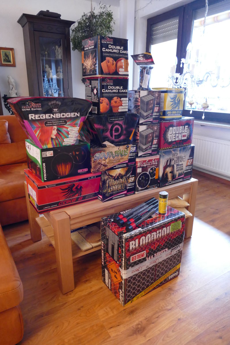 Ich habe auf die einzelnen Zündknöpfe mit Kreppband die Schusszahl notiert und habe einfach mitgezählt. Wenn der vorletzte Schuss hoch gegangen ist, habe ich den nächsten Effekt gezündet. Das hat bis auf eine kurze Lücke ganz gut hingehauen. Es war also eher ein Counting als ein Timing :-)