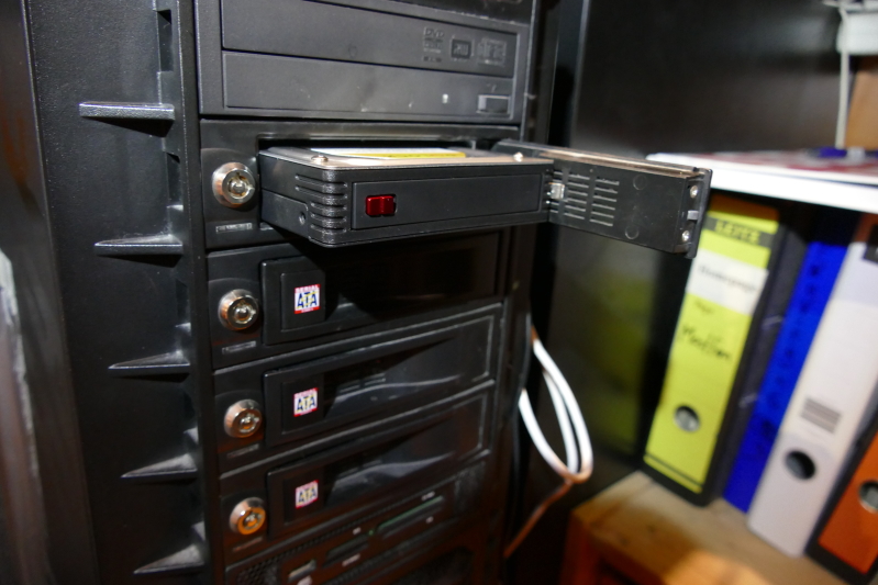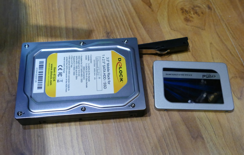 Nun ist es passiert: Ich habe für meinen Desktop tatsächlich eine SSD gekauft. So weit so gut, und sie funktioniert auch gut. Allerdings hatte ich ein Problem: keine meiner vier Festplatten ist im Desktop fest verbaut. Ich habe vier Wechselschächte, in die ich nahezu beliebig 3,5" Festplatte einschieben kann.