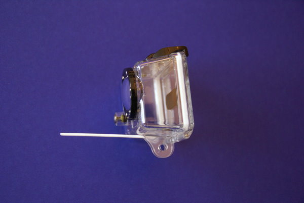 Ich habe inspiriert durch das letzte xxx-Heft an dem Schutzgehäuse ein kleines ABS-Röhrchen mit Sekundenkleber angeklebt, welches mir ein genaueres Filmen ermöglichen soll (Peilstab).