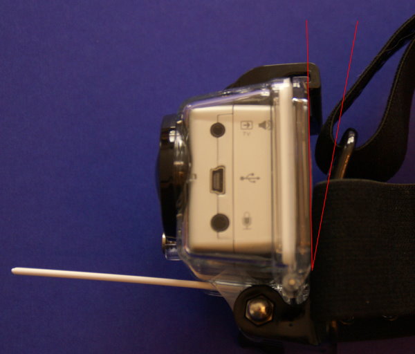 Das Stirnband sitzt gut, könnte aber an der Kamerabefestigung (Kunsstoffteil) etwas gepolstert sein, damit das Tragen nicht schmerzt. Schade ist auch, daß die Rundöse die das Schutzgehäuse aufnimmt nicht 5mm weiter raus geht. Durch den zu kurzen Abstand zum Schutzgehäuse ist die Kamera immer leicht schräg nach unten geneigt und lässt sich nicht gerade stellen.