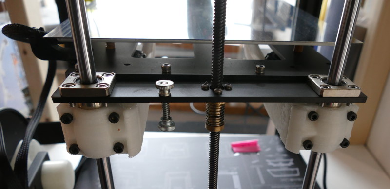 - Bei Drucken hat das Bett wie ein Kuhschwanz gewacketl und ich habe micht gewundert, wie man mit einer Schichtdicke von 0,1mm drucken kann, wenn das Bett alleine schon einen Millimeter in Resonanz schwingt.